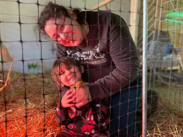 What started as an unused corner of the garage, several bales of straw, and mostly found or rummaged materials, became our first chicken coop. We never even used that door in the back, so it made for an effective chicken door out to their run. After some stress testing, our quality assurance manager signed off…